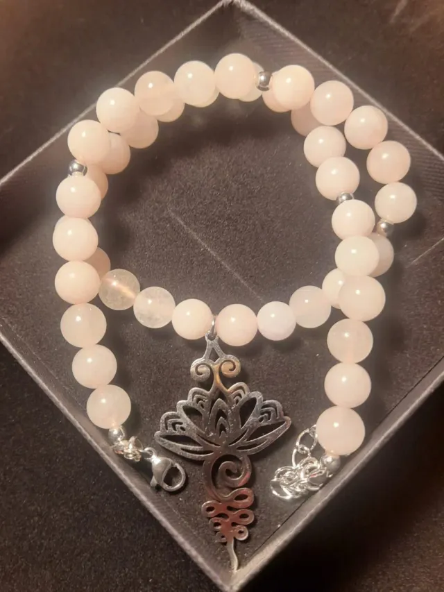 Collar Cuarzo Rosa y Colgante Flor de Loto