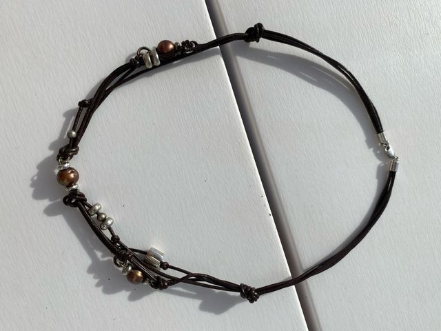 Collar Cuero El Caballo Perlas Plata