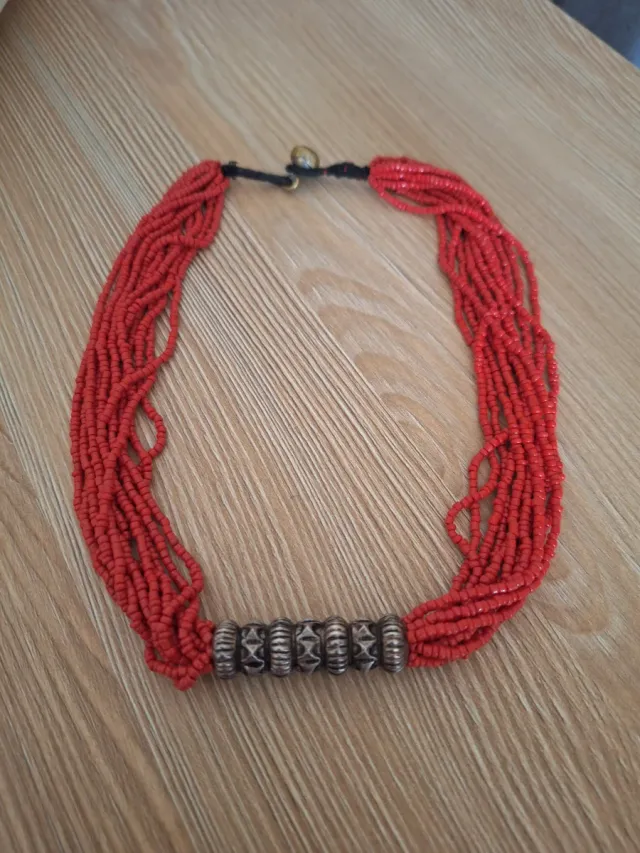 Collar de corales rojos con detalles plateados