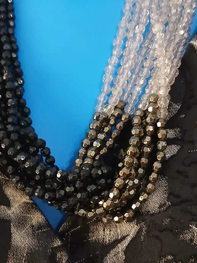Collar de cuentas negro y plateado