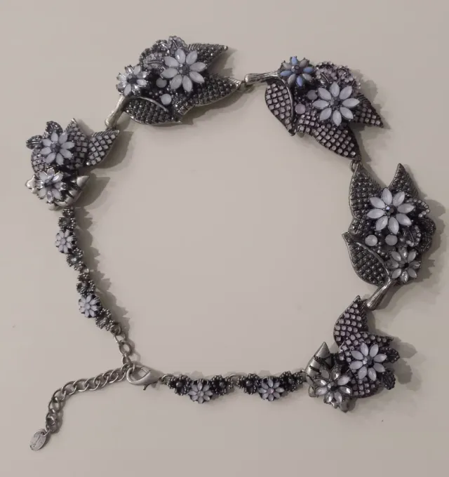 Collar de flores de joya plateado