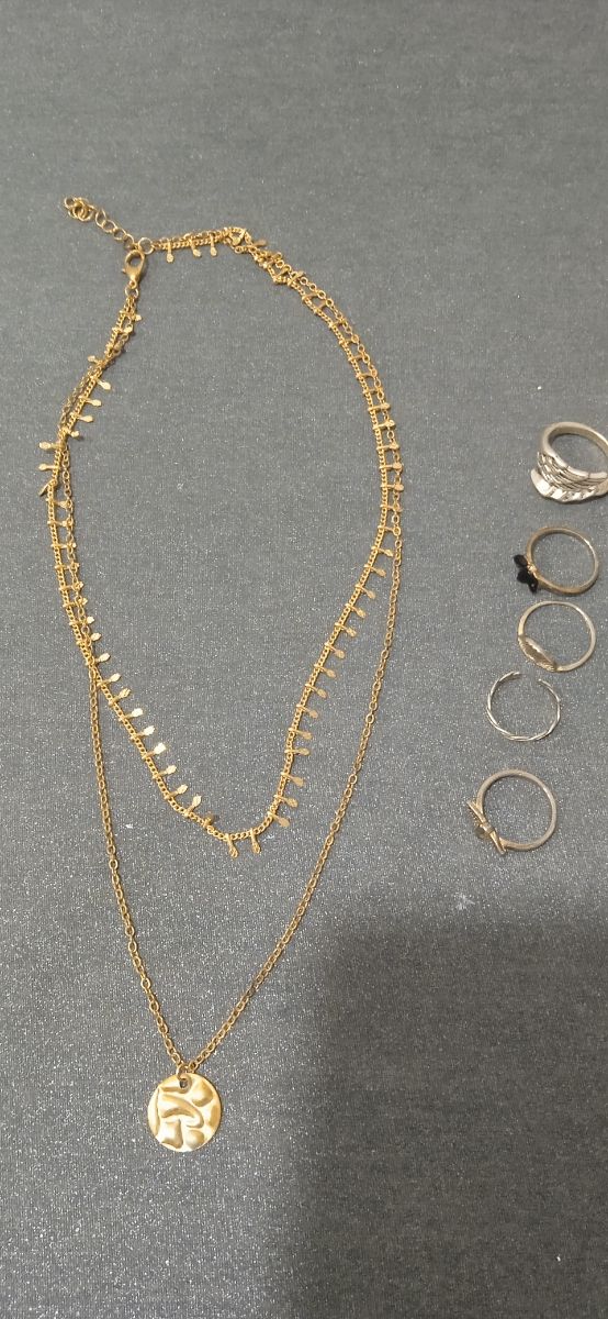 Collar dorado con 2 cadenas y anillos