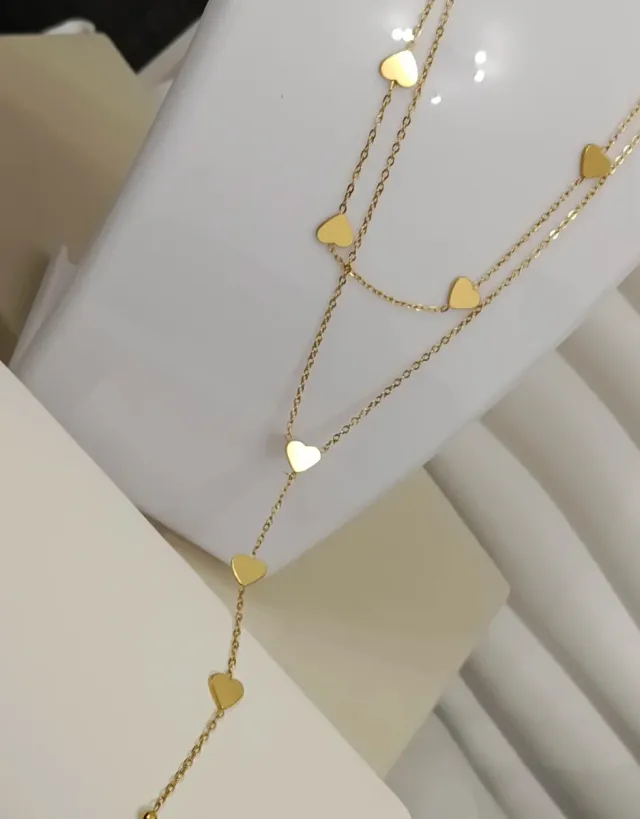 Collar Dorado Corazones Acero Inoxidable baño oro