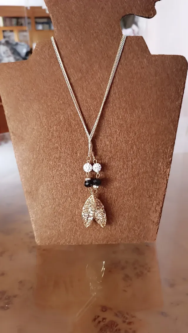 - Colgante con dos hojas caladas con cristales de Strass dentro.