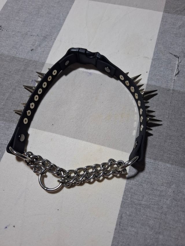Collar artesanal de estilo gótico con pinchos. - Fabricado en material sintético negro.