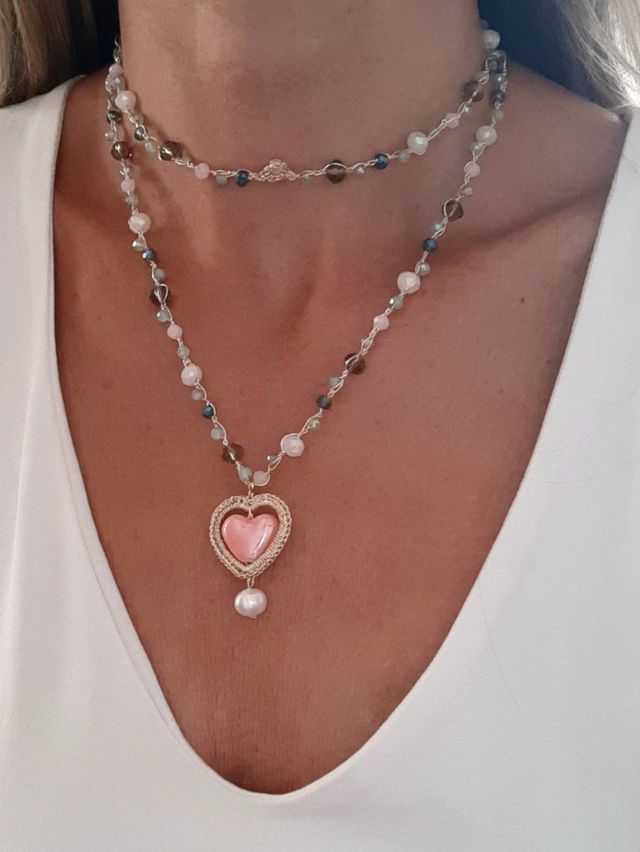 Collar largo con corazón y perla
