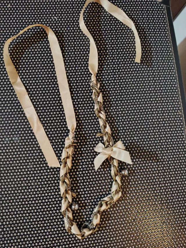 Collar lazo beige y dorado