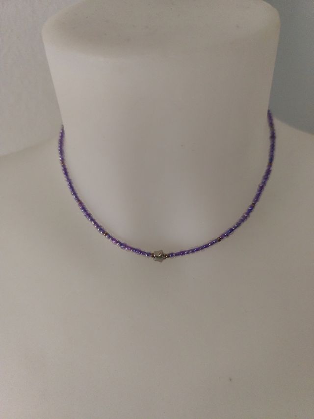Collar morado con dije estrella de plata