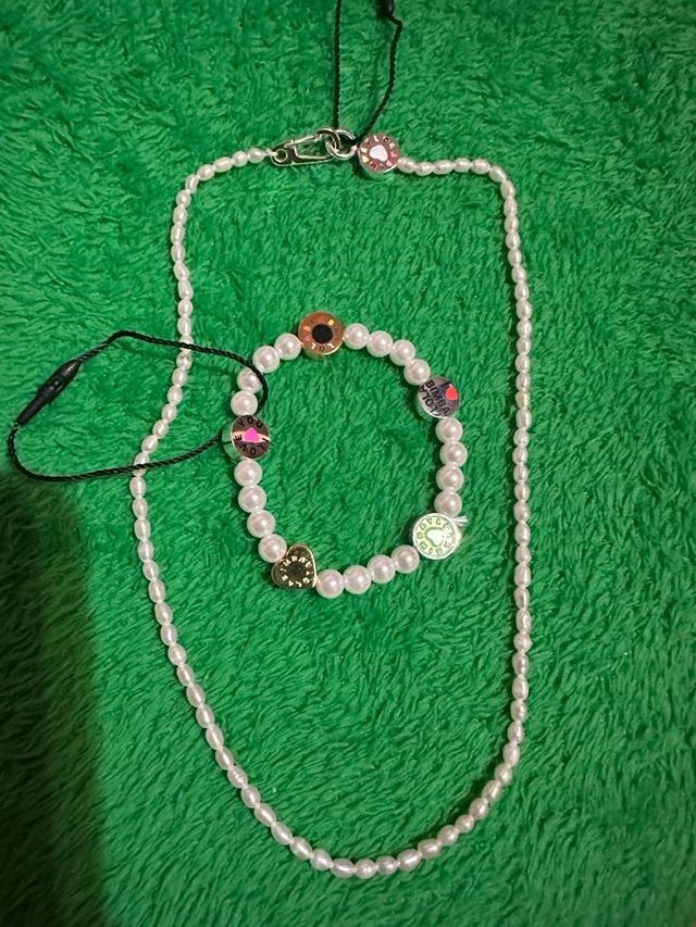 Pulsera con perlas, el collar ya fue vendido. Nuevo sin usar.con bolsa de tela de la firma Más modelos en mi perfil