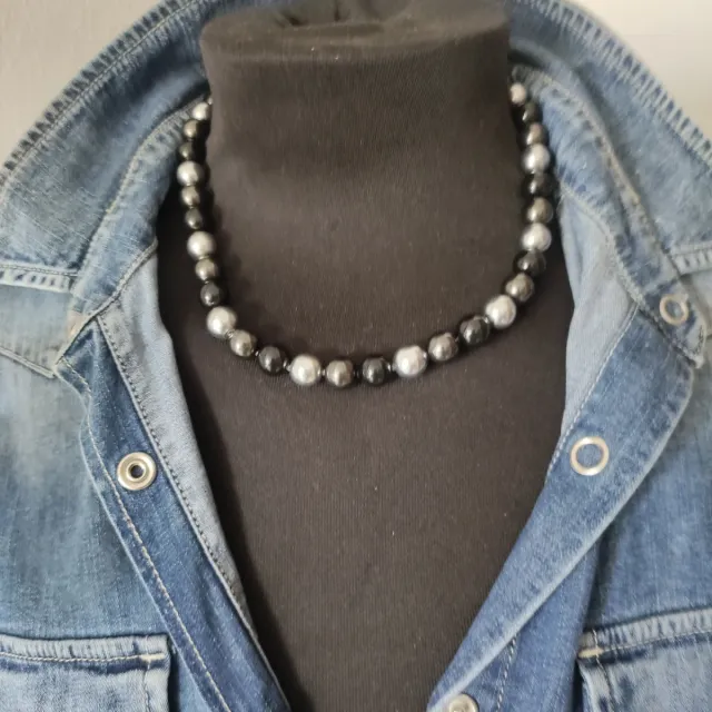 Collar Perlas de Mallorca Negro, gris y Plata.
