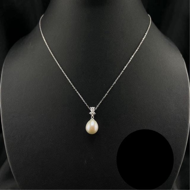 Collar Plata 925 Perla Lágrima 10mm + Circón