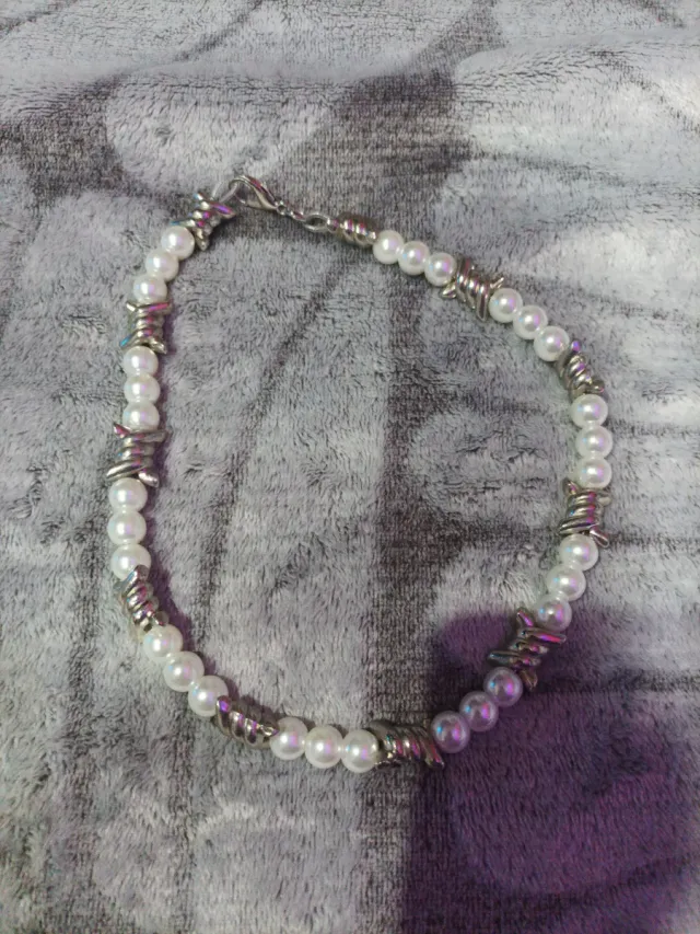 Collar de estilo punk con un diseño único que combina perlas y púas.