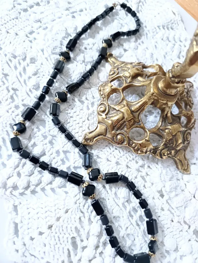 Collar Vintage Matiné Vidrio Negro y Dorado