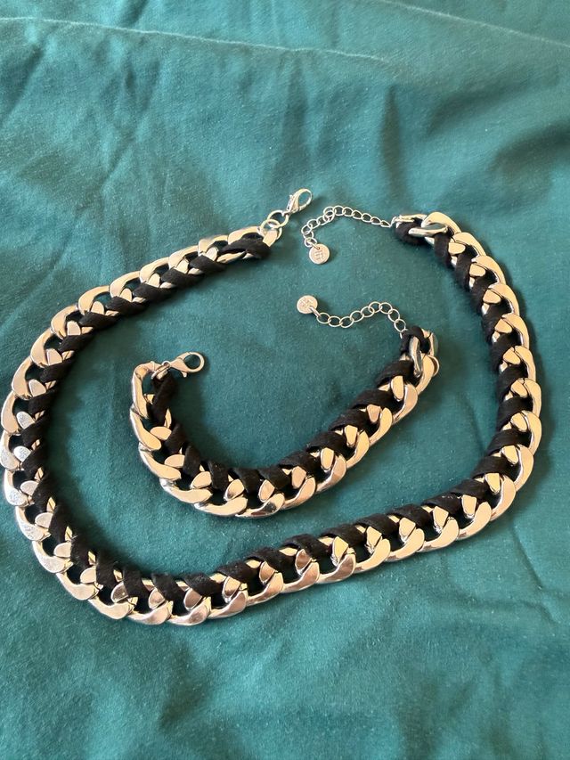 Collar y pulsera cubana plata y negro
