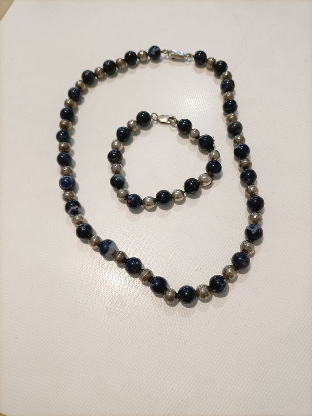 Collar y pulsera a juego de plata con piedras azules