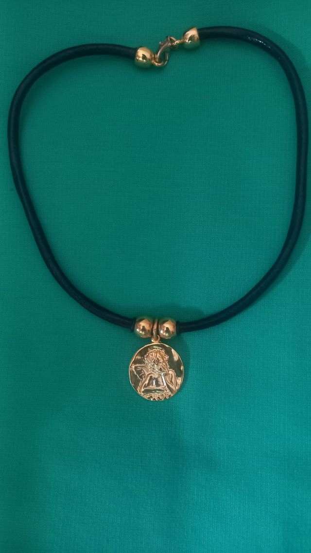 Collar y Pulsera Dorados con Cordón marrón