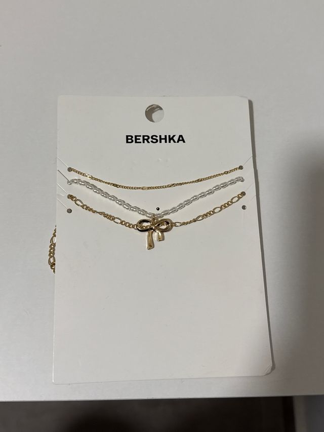 Collares Bershka dorados y blancos