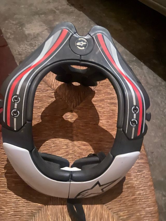 Collarín de protección para enduro, marca Alpinestars. - Diseño ergonómico. - Combinación de colores negro, blanco, rojo y gris. - Cierre ajustable.