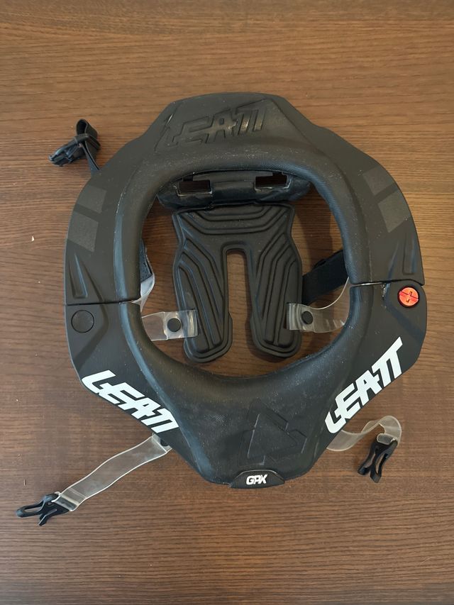 Collarín protector Leatt GPX 5.5 en talla S/M. Diseñado para ofrecer seguridad y confort. usado dos veces , practicamentw nuevo - Color negro. - Cierre frontal. - Estructura rígida y acolchada.