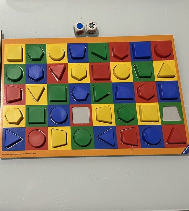 - Incluye 28 piezas de formas geométricas (círculos, cuadrados, triángulos, hexágonos, etc.) en varios colores (rojo, azul, verde, amarillo).