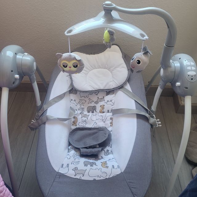 Columpio, hamaca, automático, esta como nuevo, se puede usar con pilas y conectado a la luz, tiene un mando a distancia que está sin estrenar. Con libro de instrucciones incluido