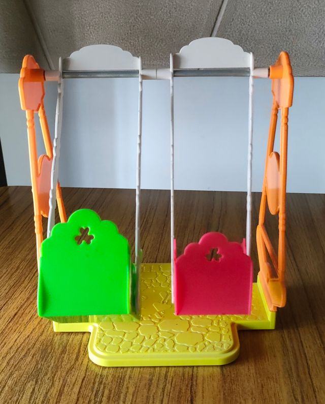 Columpio para muñecas Barriguitas, en buen estado. - Ideal para jugar. - Diseño vintage. - Dos asientos de colores.
