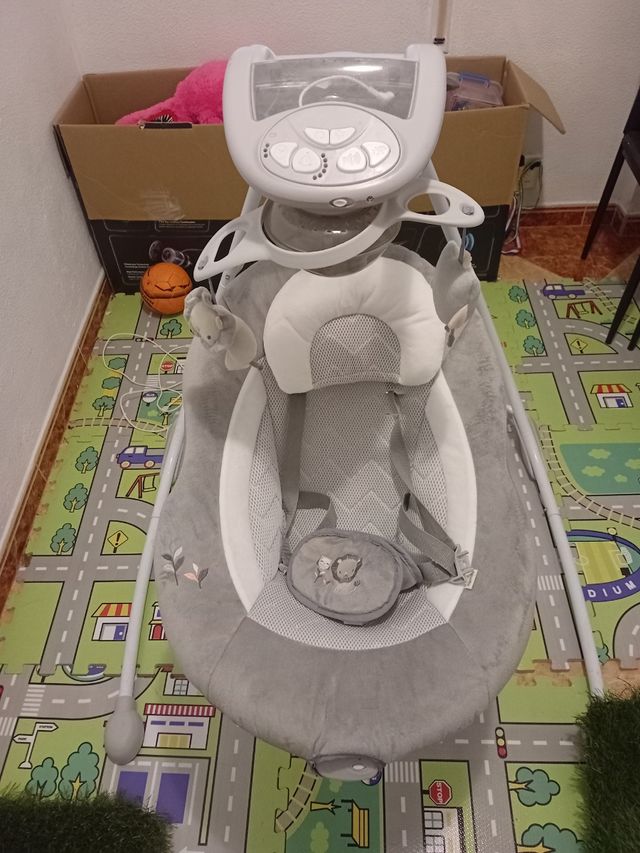 Detalles del productoPreciosa hamaca para bebé, en tonos grises y blancos, ideal para relajar al pequeño.