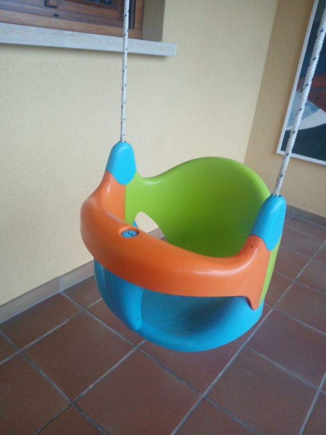 Detalles del productoColumpio para bebé, ideal para el disfrute al aire libre. Es de plástico, ligero y fácil de colgar. Se puede quitar la sillita y dejar solo la base cuando son más mayores. Cuerdas resistentes para colgarlo.