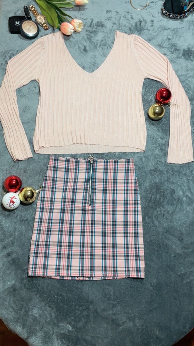 Combo Falda cuadros rosa + Jersey regalo