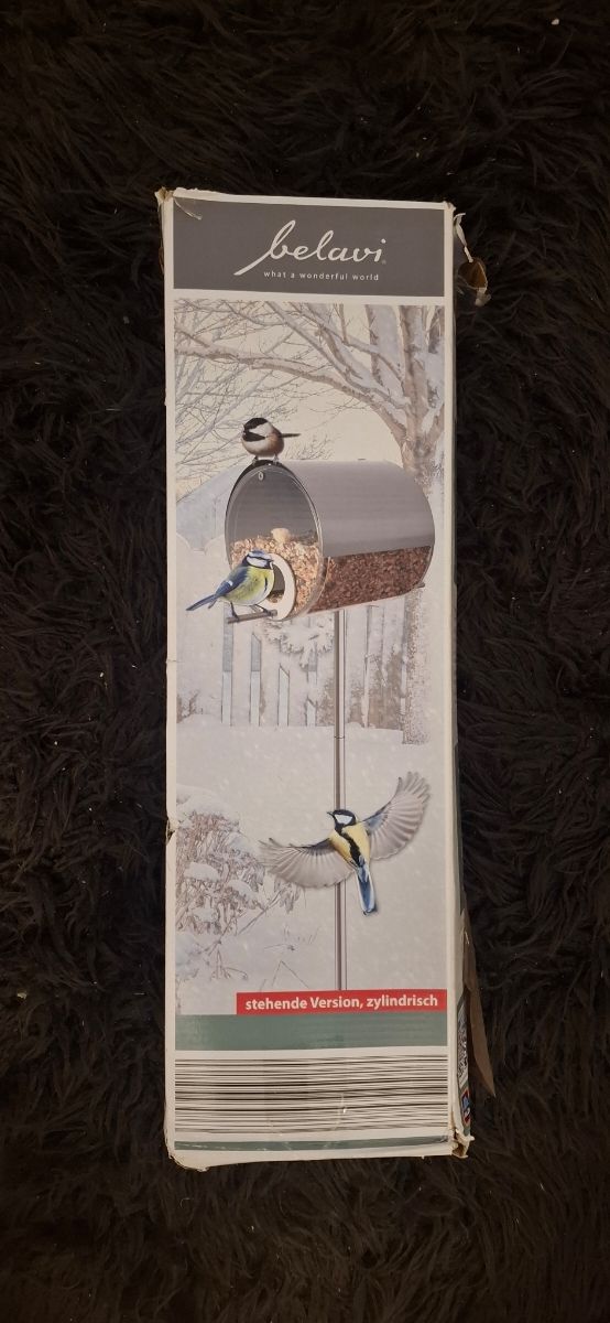 Comedero para pájaros de la marca Belavi, con un diseño cilíndrico y de pie. - Ideal para exteriores. - Atrae a diversas aves. - Diseño decorativo para el jardín.