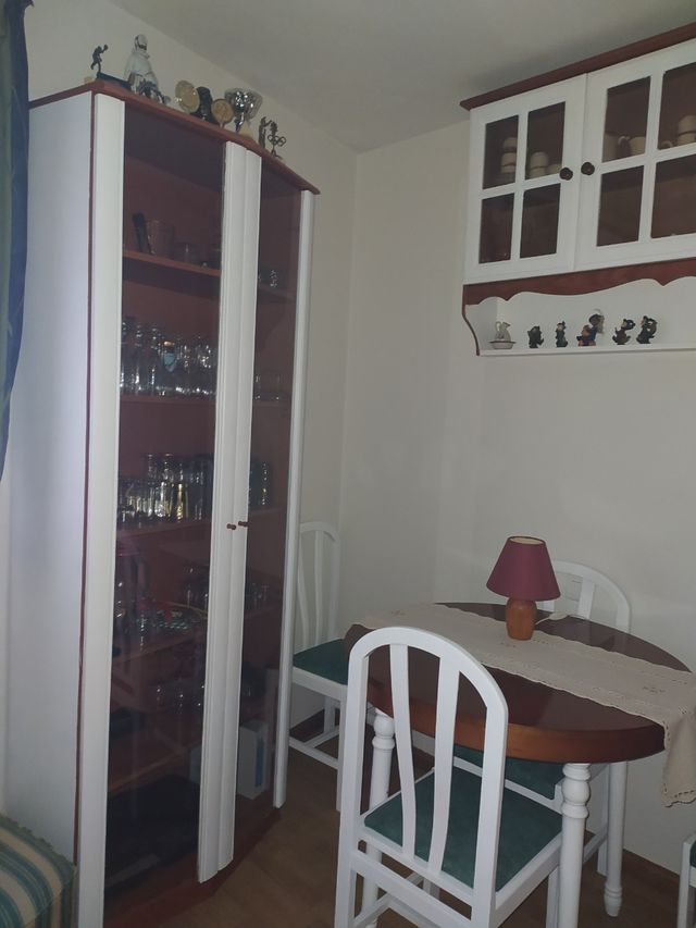comedor compuesto por vitrina y alacena más mesa y sillas