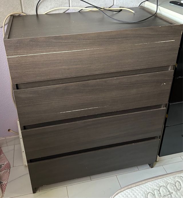 Cómoda 4 cajones madera oscura