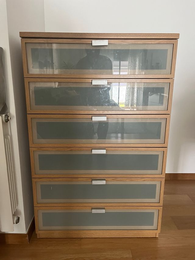 Cómoda 6 cajones madera y cristal