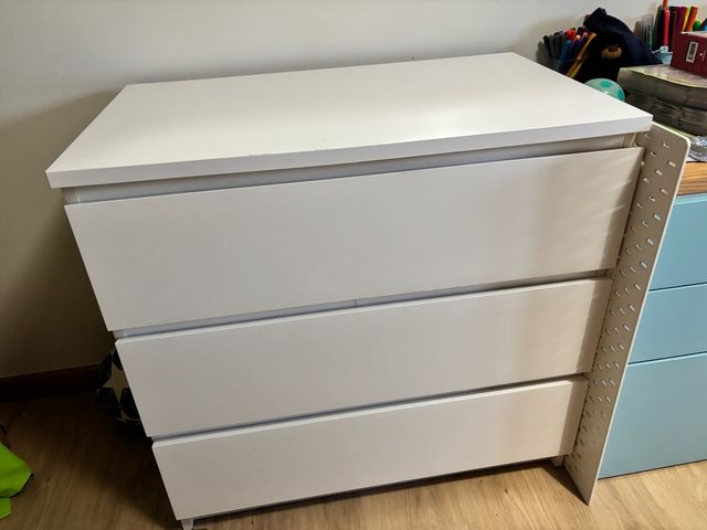 Cómoda blanca de madera con 3 cajones
