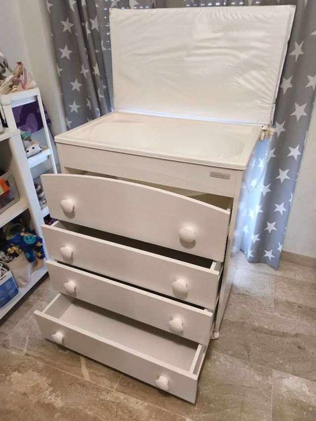 Detalles del productoCómoda con cambiador y bañera integrada, ideal para el cuidado del bebé.