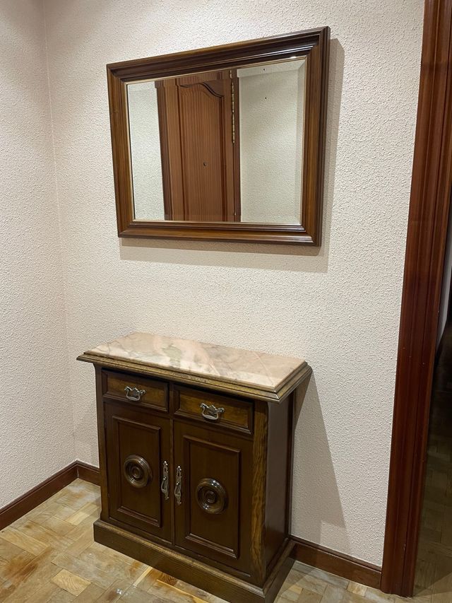 Cómoda de madera con espejo y mármol