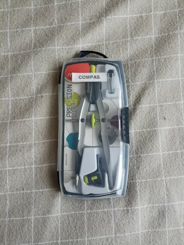 Compás de precisión Maped en su estuche original. - Incluye accesorios para dibujo. - Diseño ergonómico.