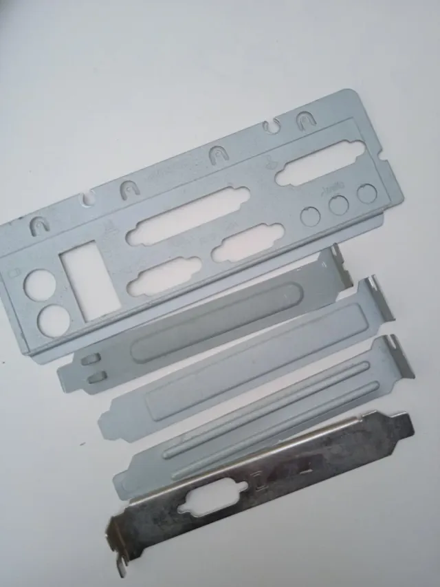 Lote de componentes metálicos para ordenador antiguo. - Placa base con ranuras. - Soportes metálicos para tarjetas. - Piezas de metal para carcasa de PC.