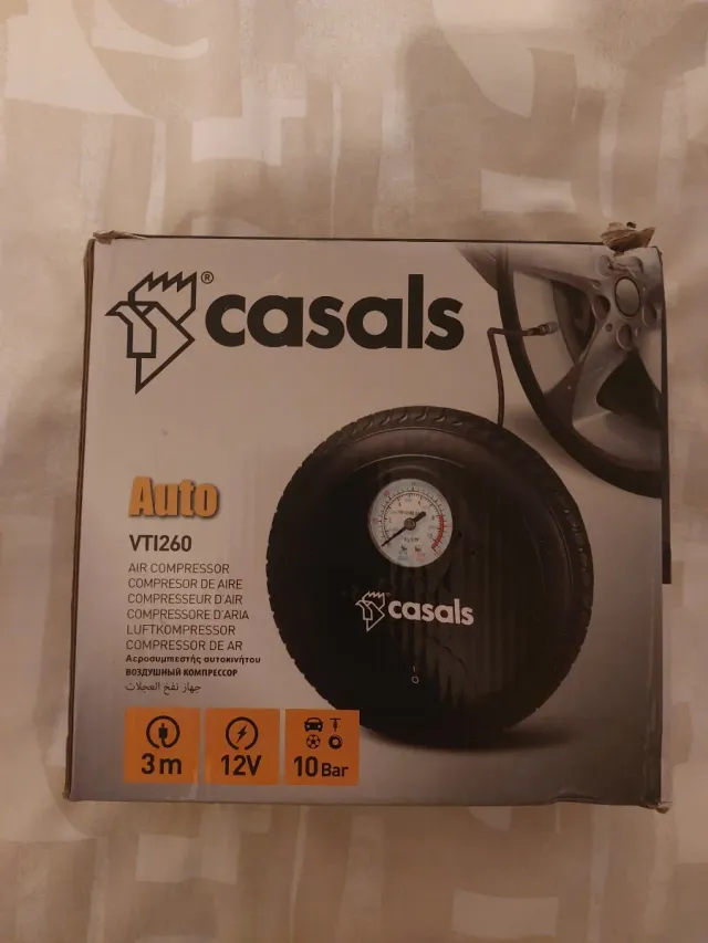 Compresor de aire Casals, modelo VTI260 Ideal para hinchar ruedas de coche, bicicleta, pelotas y similares 10 bares 12V