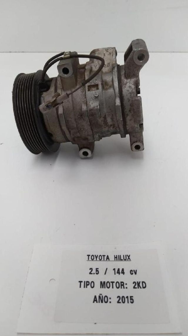Detalles del productoCompresor del aire acondicionado TOYOTA HILUX (KUN) Año 2005 DOUBLE CAB 4X4. Referencia 4472802470. Observaciones Denso hfc134a. Código interno 212724.