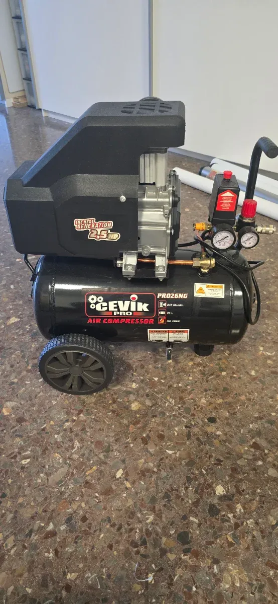 Detalles del productoCompresor de aire CEVIK PRO, modelo PR026NG, con motor de 2.5 HP. Se a gastado dos veces para hinchar ruedas.