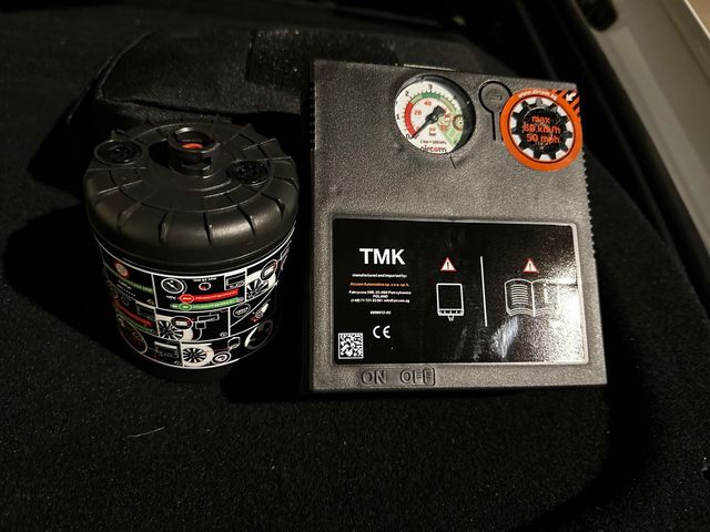 Detalles del productoCompresor de aire para coche con líquido sellador para reparar pinchazos. Incluye manómetro para controlar la presión.