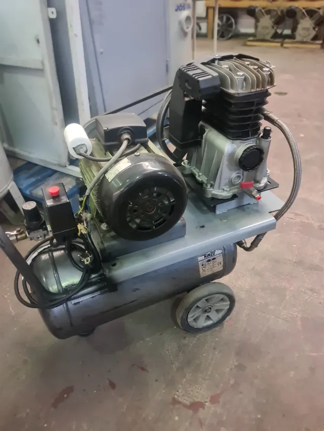 Compresor de aire portatil readaptado con depósito de 25 litros. - - Motor eléctrico 1CV. - Cabezal FINI MK102. - Poco ruido. - Ruedas para fácil transporte.
