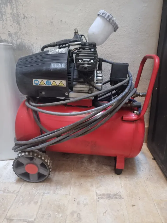 Detalles del productoCompresor de aire con depósito de 50 litros y dos pistones.
