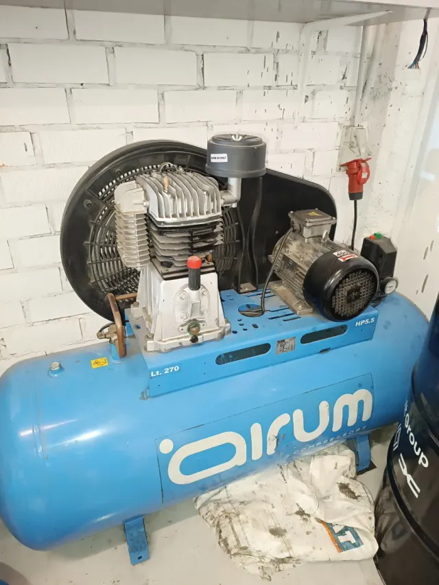 Compresor de aire profesional Airum, ideal para taller. - Capacidad de 270 litros. - Potencia de 5.5 HP. - Fabricado en Italia.