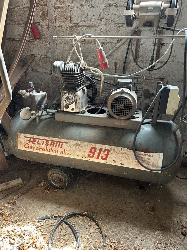 Compresor de aire de la marca FELISATTI, modelo 913. - Cilindro de aire. - Motor eléctrico. - Ruedas para transporte. -200 litros