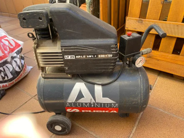 Detalles del productoCompresor de aire portátil con depósito de 50 litros.