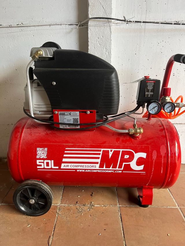 Compresor de aire MPC con depósito de 50 litros. - Capacidad del depósito: 50L. - Marca: MPC. - Color: Rojo.