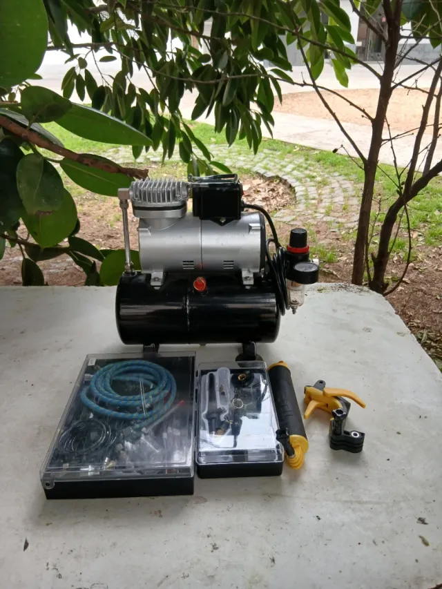 Detalles del productoCompresor de aire para aerografía, ideal para trabajos de modelismo, arte o repostería.