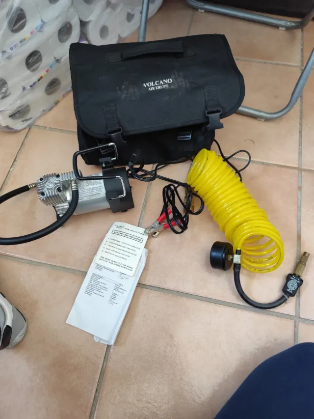 Detalles del productoCompresor de aire portátil de la marca Volcano Air Erupt, ideal para inflar neumáticos.